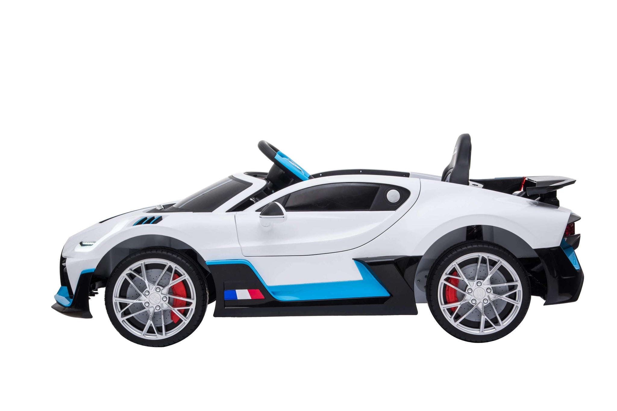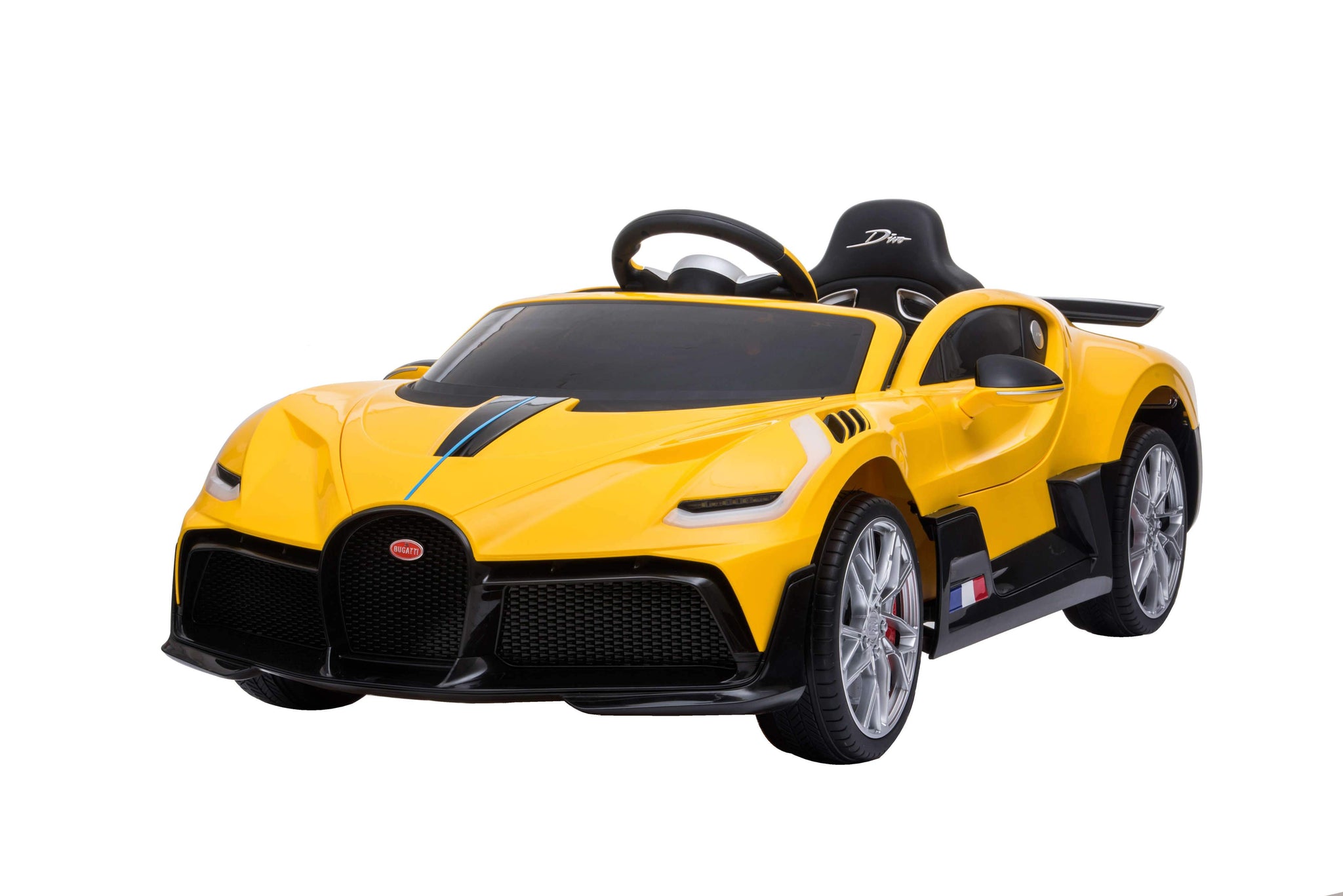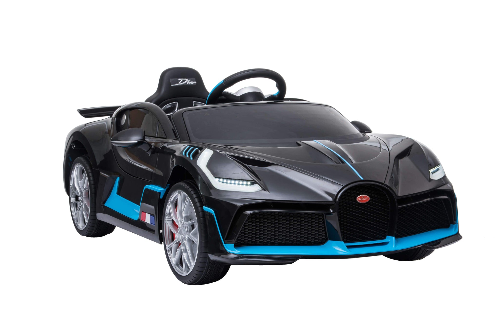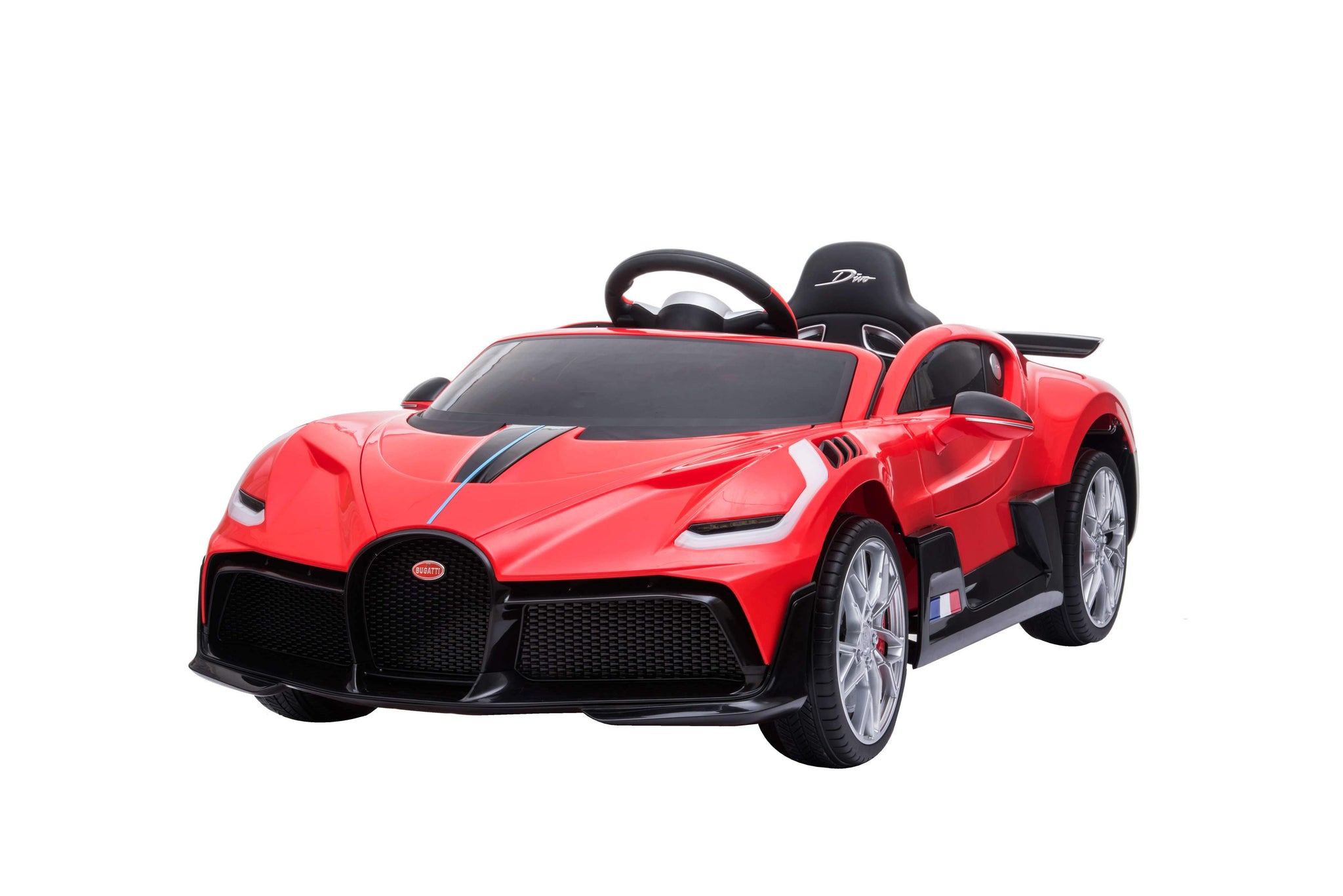 Now ready for your garage is the Bugatti Divo toddler remote control race car just for the little ones. At $6 Million made in the Bugatti factory in France this may be the only chance for most of us to enjoy the sleek lines of this beautifully crafted machine. Car Tots Divo comes fully loaded with leather seat, rubber tires, racing steering wheel and painted body for that ultimate shine. Thanks to Car Tots the Bugatti Divo ride on now comes with a 1 year manufacturer's parts replacement warranty*.