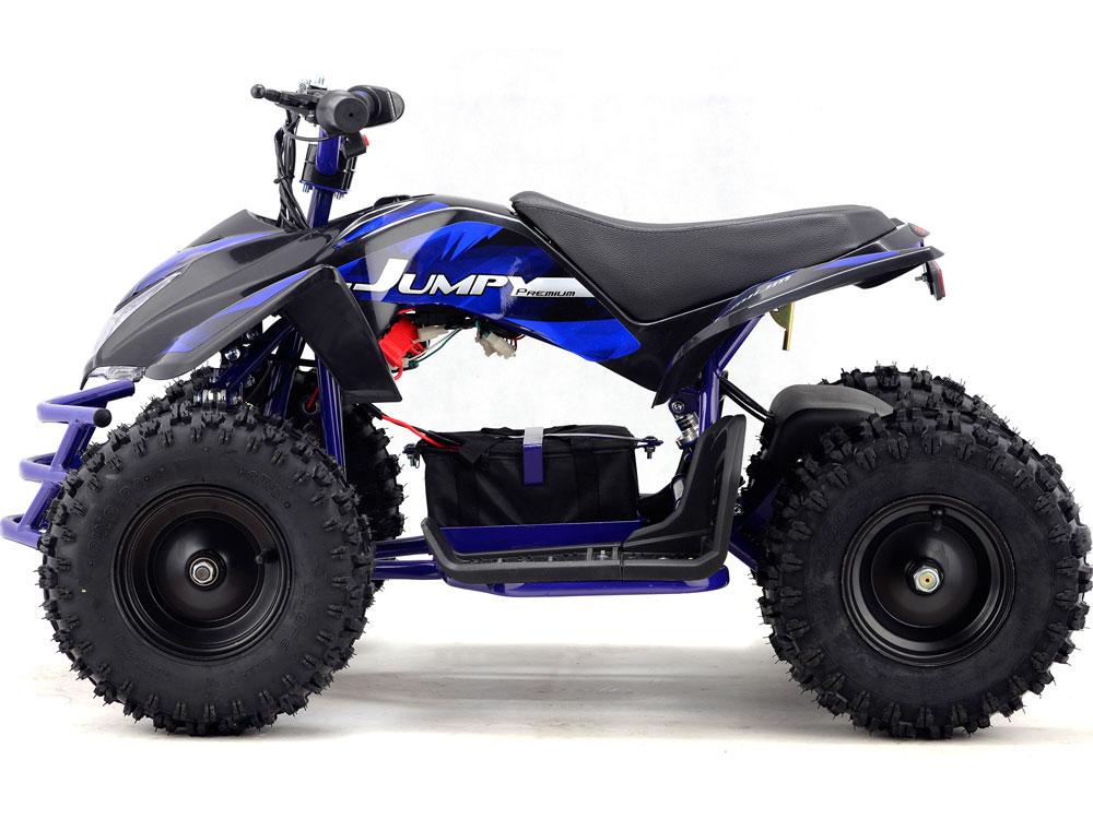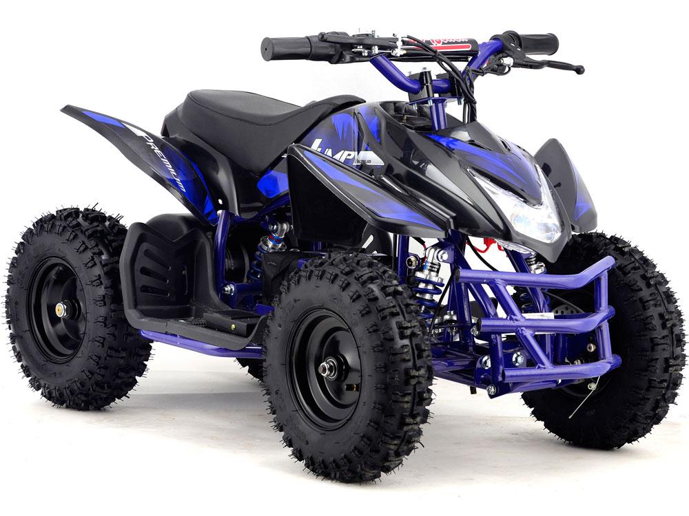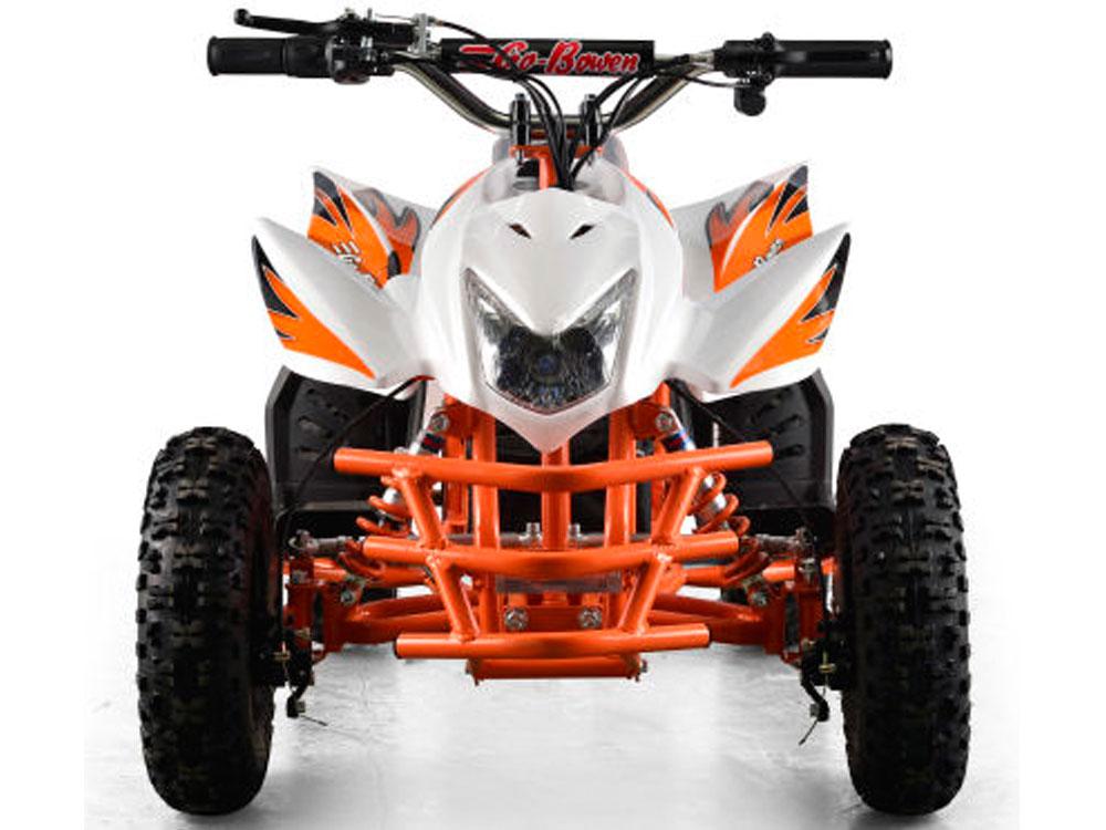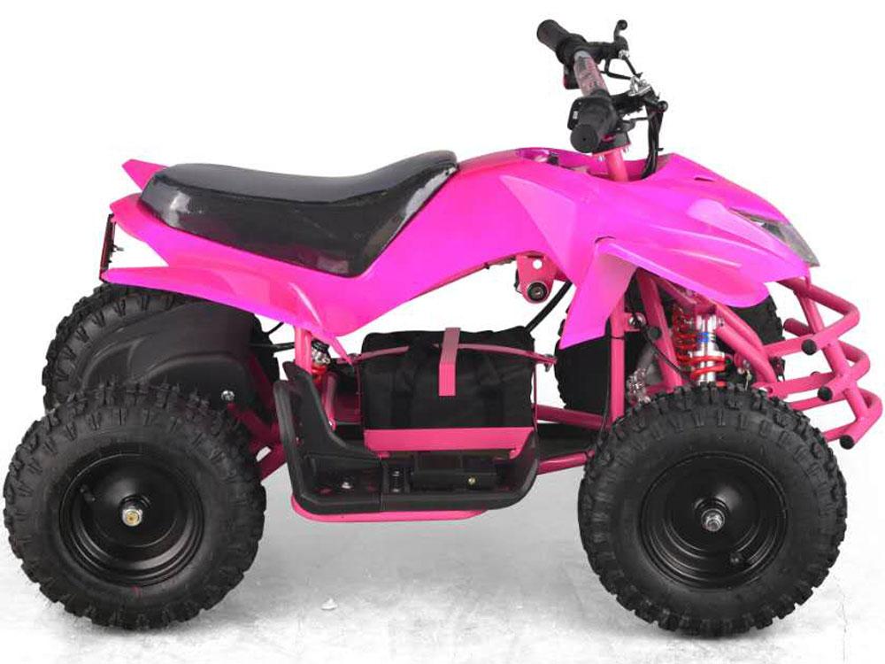 This amazing mini quad by MotoTec has a 24 volt system making it the ultimate kids atv! Great for driveway and backyard fun, cruise over bumps and speed through dirt trails with ease. Comes standard with front & rear suspension, front & rear brakes and large 13 inch knobby pneumatic tires. This mini quad provides longer ride times than the competition with TWO large 12v 12amp hour batteries. New features include: headlight, key start, battery meter, forward & reverse, 2 speeds selectable by key and twist throttle with safety foot switch.