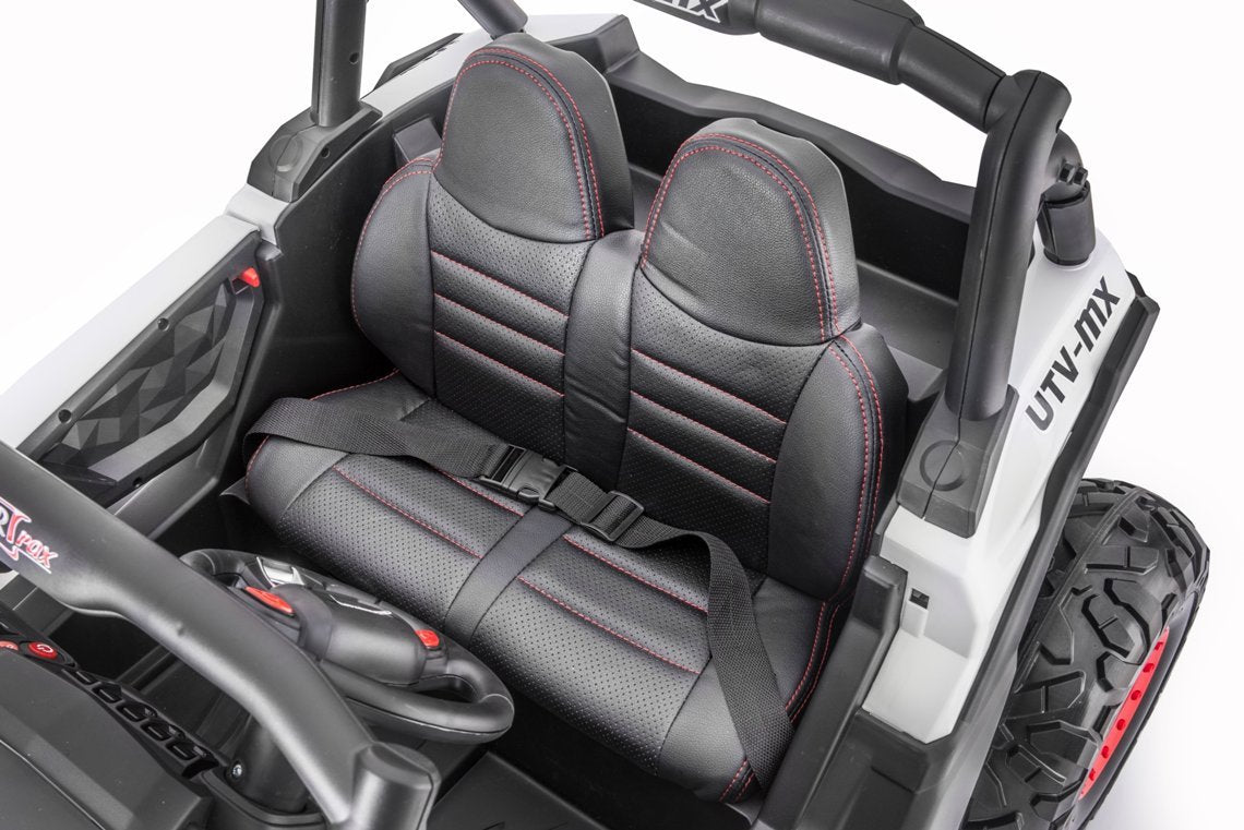 Here at Car Tots, your number one toddler ride on dealership, we pride ourselves on carrying the best assortment of remote control ride on vehicles. This amazing sport utility remote control Screamer SXS is a great example of that. There are very few two seat vehicles on the market and this one is fantastic for getting off the pavement and into yard with the four powerful motors (one at each wheel) and switchable 2 wheel to 4 wheel drive. The Screemer UTV-MX has opening doors, working horn, a little storage cubby behind the seats. We are including a 1 year Car Tots warranty* with your purchase as well.