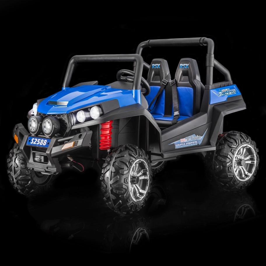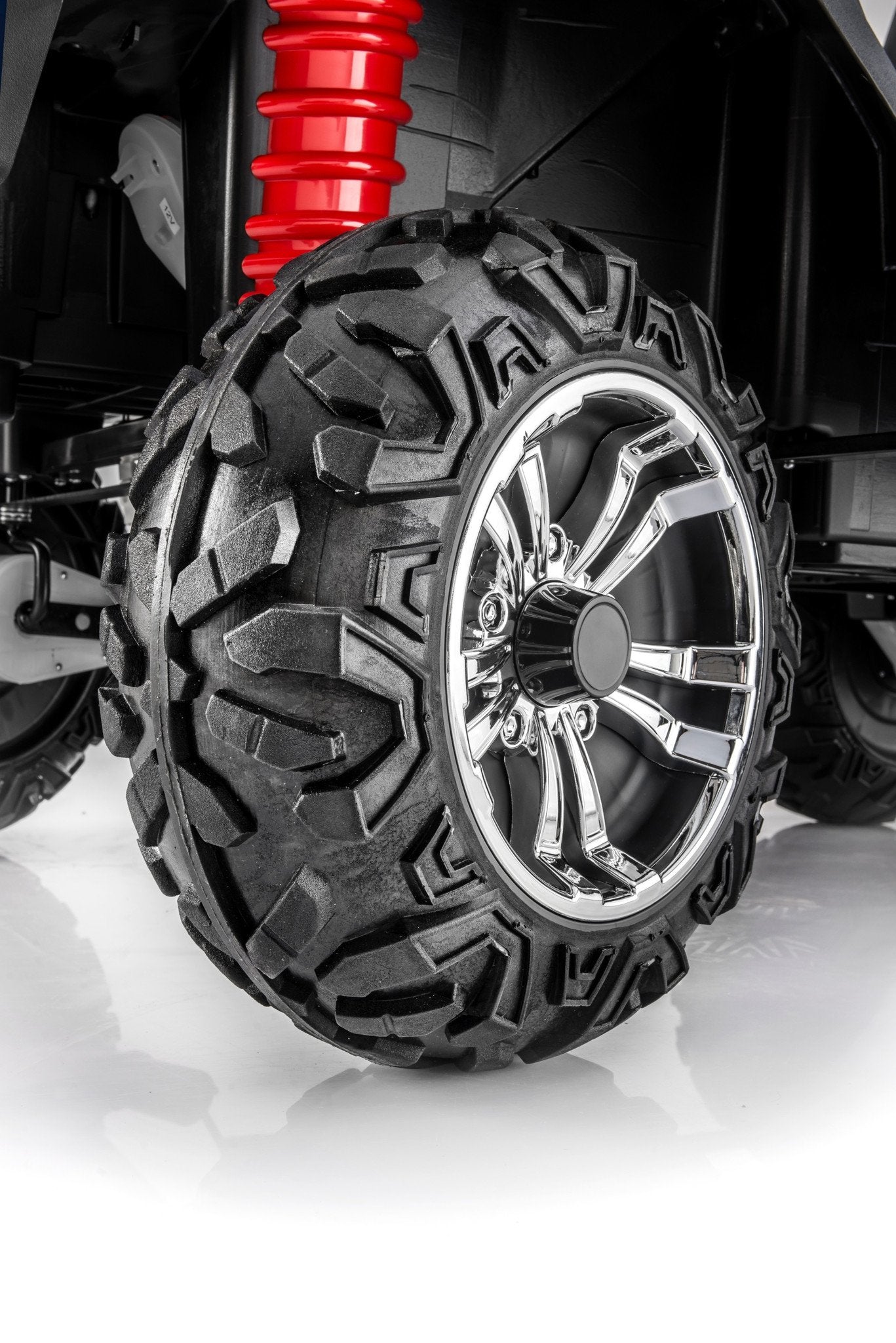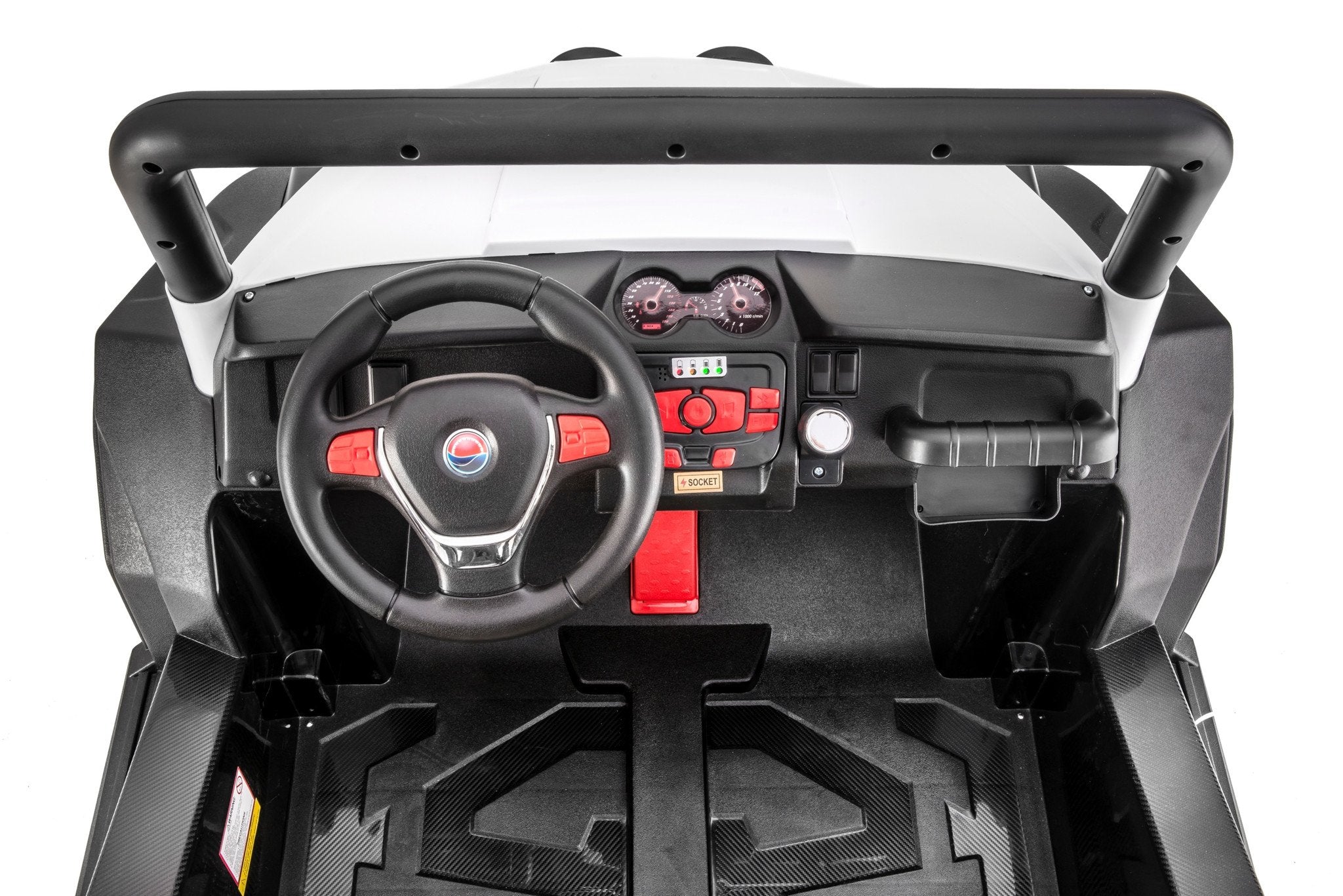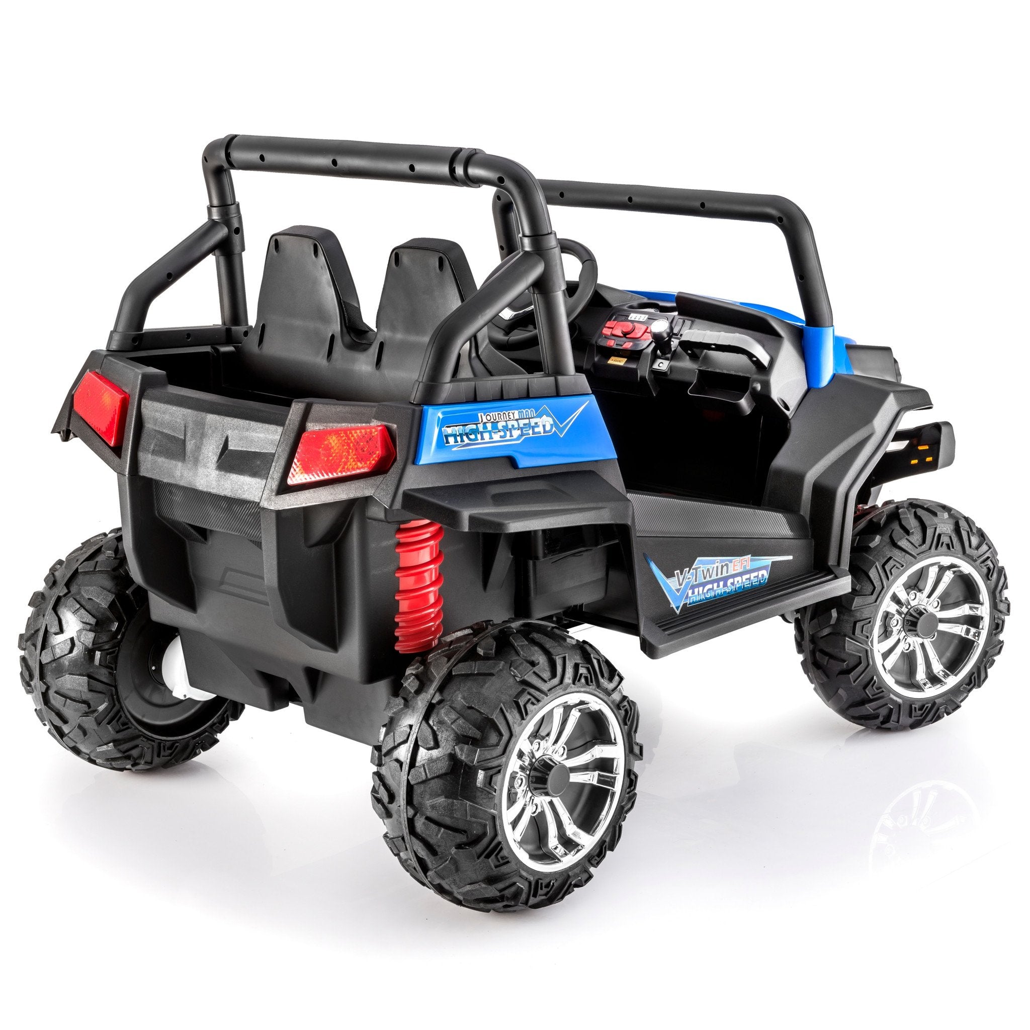 If you are looking to get off-road and for a little adventure in the green country this Trail Blazer remote control ride on UTV might be just what you need. It is a great option if you are looking for a remote control ride on two seater that has some off-road capabilities. This 12 volt ride on UTV comes with real shocks, knobby foam rubber tires for extra grip on many different terrains and four motor 4WD. There are many cool features of this fantastic ride on UTV like the cup holders in the back, working headlights, seats with cool white inserts and four wheel drive making this another great option in our rc ride on car offerings. The Trail Blazer ride on now comes with a 1 year manufacturer's parts replacement warranty*.