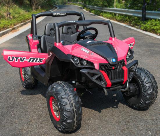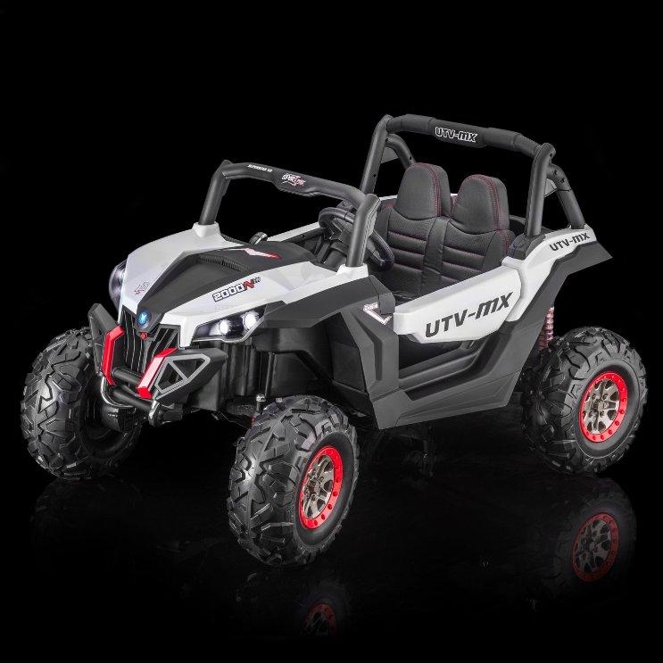 Here at Car Tots, your number one toddler ride on dealership, we pride ourselves on carrying the best assortment of remote control ride on vehicles. This amazing sport utility remote control Screamer SXS is a great example of that. There are very few two seat vehicles on the market and this one is fantastic for getting off the pavement and into yard with the four powerful motors (one at each wheel) and switchable 2 wheel to 4 wheel drive. The Screemer UTV-MX has opening doors, working horn, a little storage cubby behind the seats. We are including a 1 year Car Tots warranty* with your purchase as well.